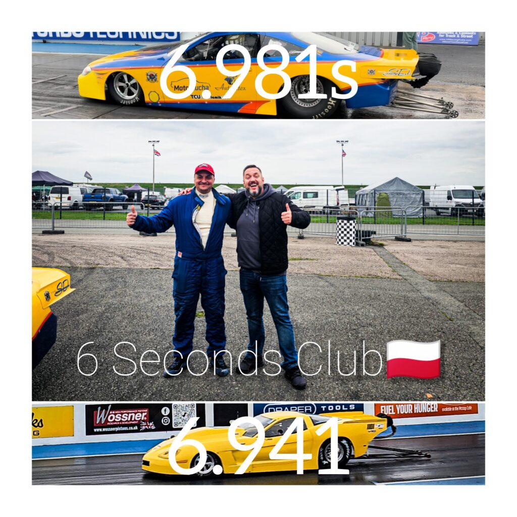 18.10.2025, Mariusz Lejman swoją Corvettą, na torze w Santa Pod, w mglisty i chłodny dzień postanowił założyć Polski 6sec Club!!!! Zrobił to dokładnie z czasem 6.941 s oraz prędkością na mecie wynoszącą 328.63 km/h! WIELKIE Gratulacje!!! Jest to Nasz PIERWSZY Polski samochód który przełamał barierę 7 sekund!