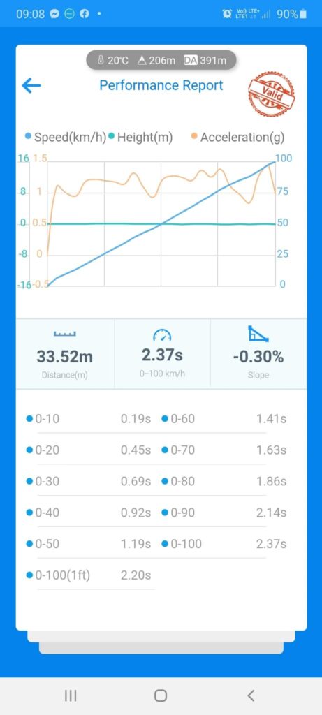 Przy ostatnim rekordzie w Broczynie Patryk zrobił czas 100-200 km/h na poziomie 3,27 sekundy, co jest niesamowitym czasem dla auta, które waży prawie dwie tony.Najlepszy czas 0-100 osiągnięty na zawodach pochodzi z poprzedniego rekordu w Trencinie na Słowacji i wynosi 2,37 sekundy.
